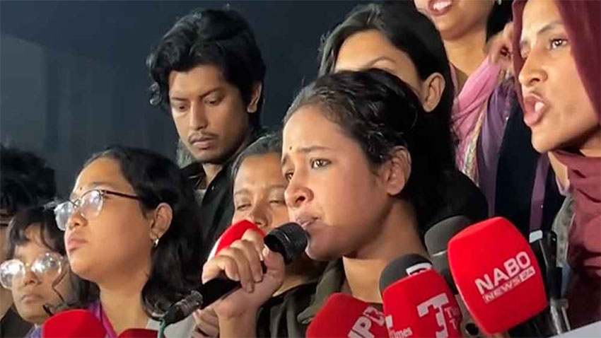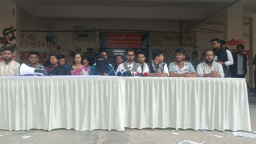 সংবাদ সম্মেলনে বিশ্ববিদ্যালয়ের বিভিন্ন বিভাগের শিক্ষার্থীরা উপস্থিত ছিলেন।