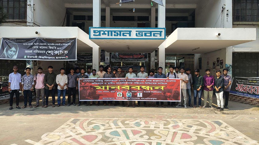 ডুজার সাংবাদিকদের উপর হামলার প্রতিবাদে ইবিতে সাংবাদিক সংগঠনগুলোর মানববন্ধন