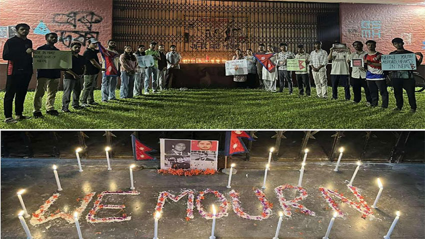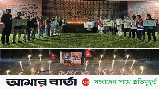 বাংলাদেশ কৃষি বিশ্ববিদ্যালয়ের (বাকৃবি) নেপালি শিক্ষার্থীরা নেপালে সাম্প্রতিক সহিংসতায় নিহত ২১ শিক্ষার্থীর প্রতি শ্রদ্ধা জানিয়ে মোমবাতি প্রজ্জ্বলন কর্মসূচি পালন করেছে।