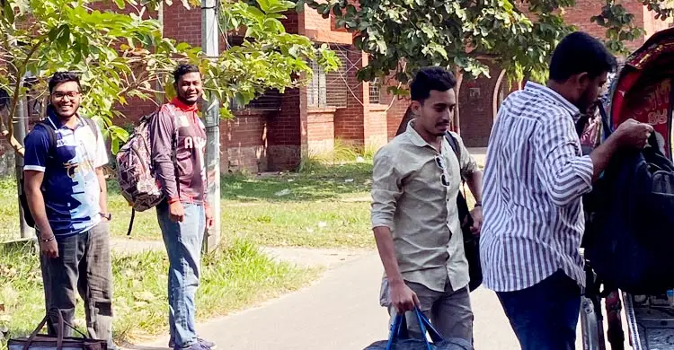 সোমবার (২৪ নভেম্বর) সকাল থেকে বিভিন্ন হলের শিক্ষার্থীদের ব্যাগ নিয়ে বাসার উদ্দেশ্যে বের হয়ে যেতে দেখা গেছে। শিক্ষার্থীরা জানান, বিশ্ববিদ্যালয় প্রশাসন ২৪ নভেম্বর থেকে ৬ ডিসেম্বর পর্যন্ত সব ধরনের একাডেমিক কার্যক্রম বন্ধ ঘোষণা করায় তারা নিজ নিজ জেলা ও বাড়িতে ফিরে যাচ্ছেন। অনেকে এরইমধ্যে টিকিট কনফার্ম করে সকালে হল ছেড়েছেন, আর যারা দূরপাল্লার পথে যাবেন তারা বিকেলের মধ্যেই রওয়ানা হবেন বলে জানা গেছে।