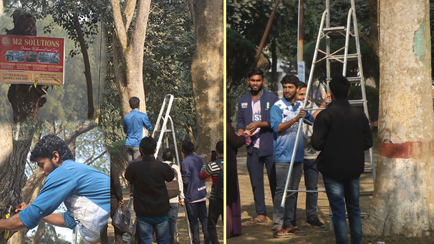 ইসলামী বিশ্ববিদ্যালয়ে (ইবি) ক্যাম্পাসের বিভিন্ন ফলজ ও বনজ গাছ থেকে পেরেক, ব্যানার ও ফেস্টুন অপসারণ