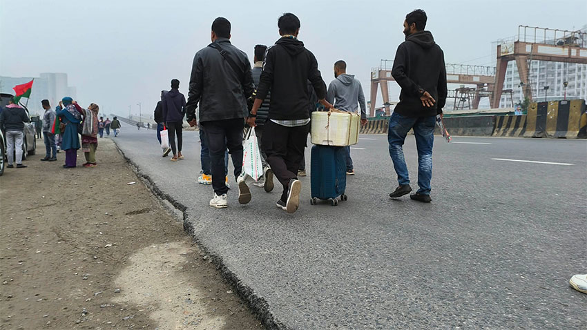 এর আগে সোমবার সকাল ৬টা ৪১ মিনিটের দিকে বনানীর চেয়ারম্যানবাড়ি এলাকায় একটি ট্রাকের চাপায় মিনা আক্তার নামের এক নারী পোশাকশ্রমিক নিহত হন। এর প্রতিবাদে বিভিন্ন পোশাক কারখানার শ্রমিকেরা সড়ক অবরোধ করেন। তারা বনানীর কামাল আতাতুর্ক অ্যাভিনিউ থেকে মহাখালীর আমতলী পর্যন্ত সড়কে অবস্থান নেন। এতে দুই পাশের সড়কে শত শত গাড়ি আটকে পড়ে। প্রায় সাত ঘণ্টা পর শ্রমিকেরা সড়ক ছাড়লে যানবাহন চলাচল শুরু হয়।