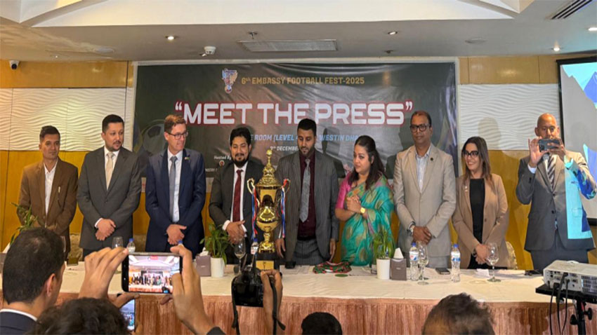 ৬ষ্ঠ ‘এম্বাসি ফুটবল ফেস্ট ২০২৫’ -এর জার্সি, ট্রফি ও সময়সূচি উন্মোচন