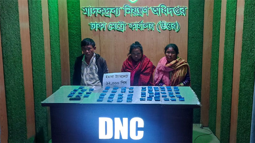 ঢাকা মহানগরীতে অভিযান চালিয়ে ১২ হাজার পিস ইয়াবাসহ ক্ষুদ্র নৃগোষ্ঠীর তিনজন মাদককারবারীকে গ্রেপ্তার করেছে মাদকদ্রব্য