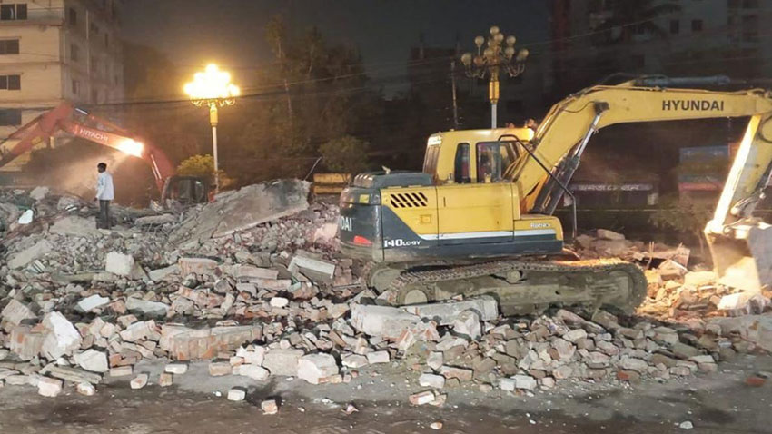 রাজশাহীতে আওয়ামী লীগের অফিস গুঁড়িয়ে দিলেন বিক্ষোভকারীরা