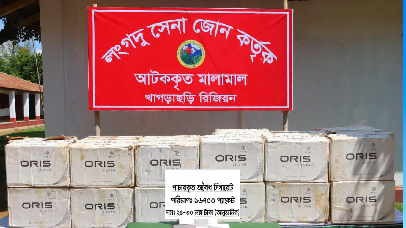 সেনাবাহিনীর লংগদু জোনের নেতৃত্বে ৩০ লক্ষ টাকার অবৈধ ভারতীয় সিগারেট জব্দ