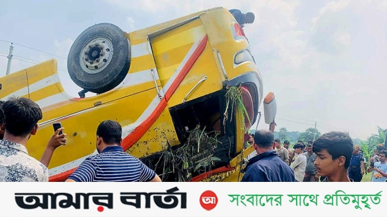 এক বাসের ধাক্কায় উল্টে গেল আরেক বাস, শিশু ও নারী নিহত