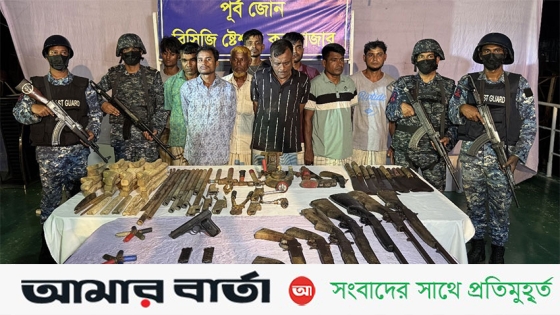 কক্সবাজারের মহেশখালীতে কোস্ট গার্ড ও নৌবাহিনীর যৌথ অভিযানে বিপুল পরিমাণ অস্ত্র, গোলা-বারুদ ও অস্ত্র তৈরির সরঞ্জামাদি সহ কুখ্যাত জিয়া বাহিনীর ৯ জন সক্রিয় সদস্য আটক