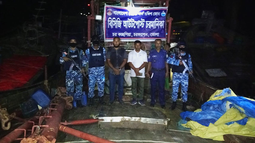 ভোলার চরফ্যাশনে কোস্ট গার্ড ও মৎস্য অধিদপ্তরের যৌথ অভিযানে ৬ টি অবৈধ আর্টিসনাল ট্রলিং বোট