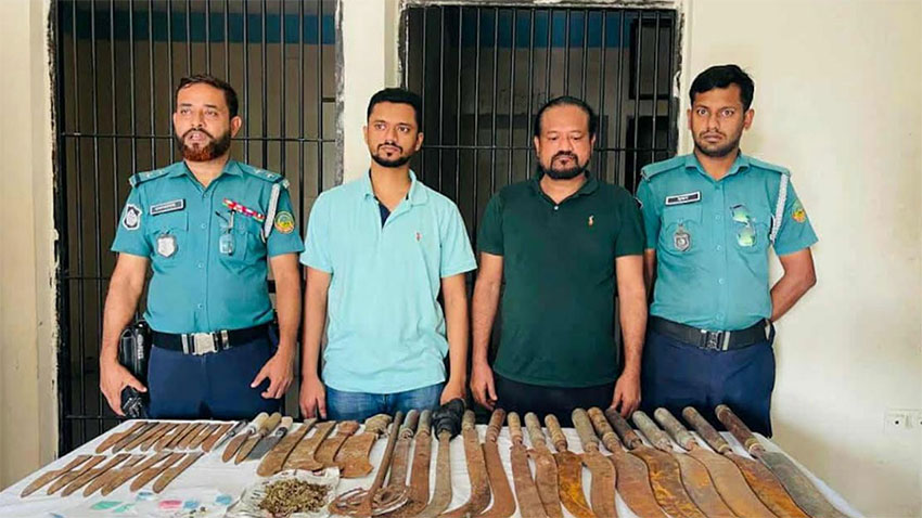 গাজীপুরে বাসাবাড়ি থেকে দেশীয় অস্ত্র-মাদক উদ্ধার, বাবা-ছেলে আটক
