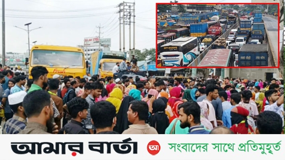 নারায়ণগঞ্জের বন্দর উপজেলার মদনপুর এলাকায় এক গার্মেন্টস শ্রমিকের মৃত্যুকে কেন্দ্র করে সহকর্মীরা ঢাকা-চট্টগ্রাম মহাসড়ক অবরোধ করে বিক্ষোভ করেছেন। এতে মহাসড়কে তীব্র যানজটের সৃষ্টি হয়।