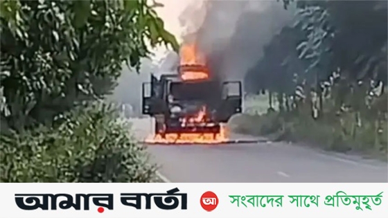 মাদারীপুরে চিনিবোঝাই ট্রাকে আগুন, পুলিশের গাড়ি ভাঙচুর