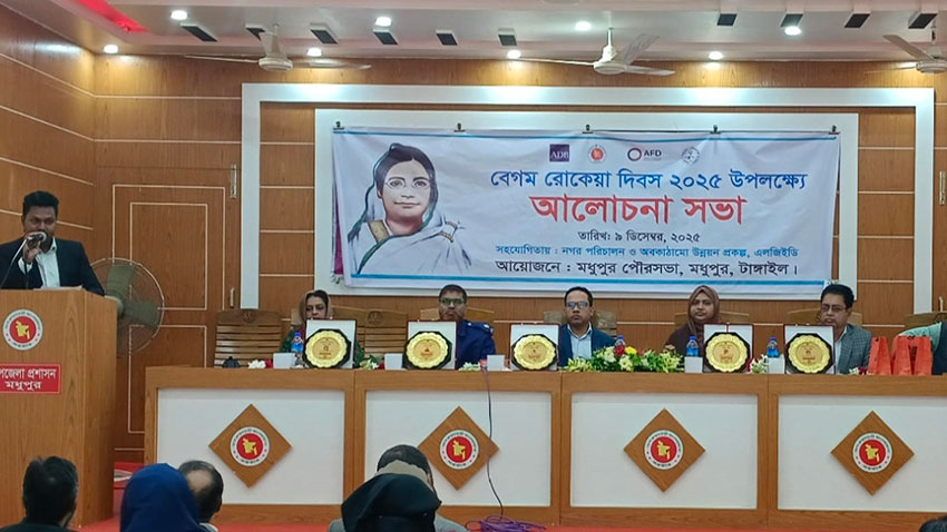 “নারী ও কন্যার প্রতি সহিংসতা বন্ধে ঐক্যবদ্ধ হই, ডিজিটাল নিরাপত্তা নিশ্চিত করি”—এই প্রতিপাদ্যকে সামনে রেখে টাঙ্গাইলের মধুপুরে বর্ণাঢ্য আয়োজনের মধ্য দিয়ে পালিত হয়েছে আন্তর্জাতিক নারী নির্যাতন প্রতিরোধ পক্ষ ও বেগম রোকেয়া দিবস-২০২৫।