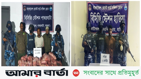 বরগুনা ও নোয়াখালীতে কোস্ট গার্ডের পৃথক ২টি অভিযানে হরিণের মাংসসহ শিকারি এবং গাঁজাসহ মাদক কারবারি আটক।