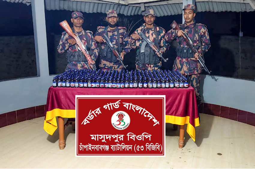 চাঁপাইনবাবগঞ্জ বিজিবির অভিযানে ভারতীয় নেশাজাতীয় সিরাপ জব্দ