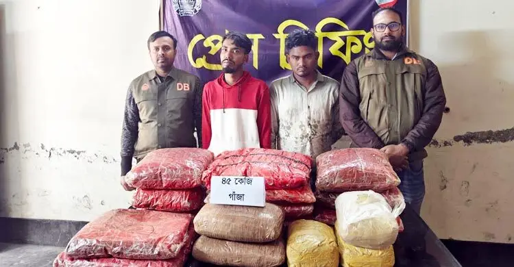 মালামালবোঝাই পিকআপ থেকে ৪৫ কেজি গাঁজা উদ্ধার, আটক ২