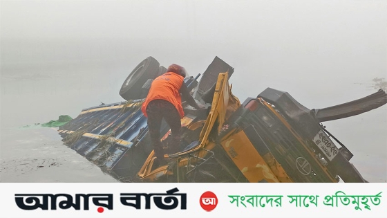 সেতুর রেলিং ভেঙে নদীতে ট্রাক, দুজনের মরদেহ উদ্ধার