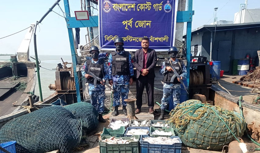 চট্টগ্রামের বাঁশখালীতে জাল ও সামুদ্রিক মাছসহ ১ টি অবৈধ আর্টিসানাল ট্রলিং বোট জব্দ করেছে কোস্ট