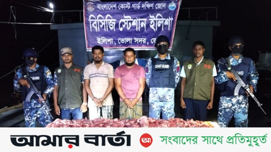 ভোলার ইলিশা লঞ্চঘাট সংলগ্ন এলাকায় অভিযান চালিয়ে ৪৫ কেজি হরিণের মাংসসহ দুই পাচারকারীকে আটক করেছে বাংলাদেশ কোস্ট গার্ড।