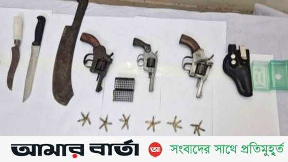 অভিযানে তিনটি রিভলভার ছাড়া ও ৭৩ রাউন্ড তাজা কার্তুজ, একটি রিভলভারের কাভার, একটি চাপাতি এবং দুটি ছোট ছুরি উদ্ধার করা হয়েছে।