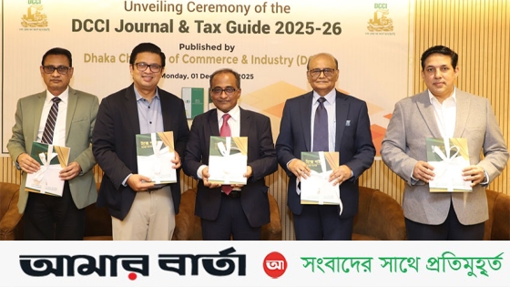 ঢাকা চেম্বার অব কমার্স অ্যান্ড ইন্ডাস্ট্রি (ডিসিসিআই) কর্তৃক প্রকাশিত ‘ডিসিসিআই জার্নাল অব বিজনেস অ্যান্ড ইকোনোমিক পলিসি’-এর দ্বিতীয় সংষ্করণ এবং ‘ট্যাক্স গাইড ২০২৫-২৬’-এর মোড়ক উন্মোচনের অনুষ্ঠান গত সোমবার (০১ ডিসেম্বর) ডিসিসিআই অডিটোরিয়ামে অনুষ্ঠিত হয়।