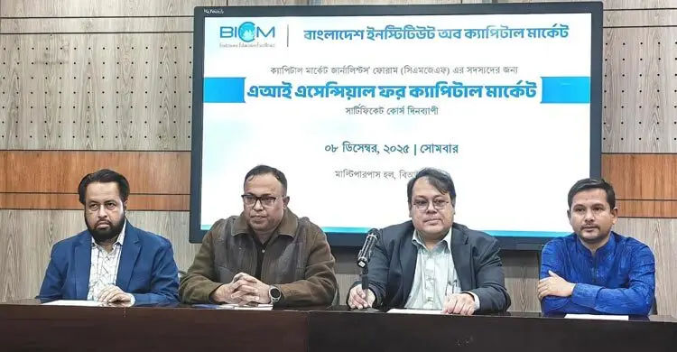 সোমবার (৮ ডিসেম্বর) বিআইসিএমের মাল্টিপারপাস হলে ক্যাপিটাল মার্কেট জার্নালিস্ট ফোরামের (সিএমজেএফ) সদস্যদের জন্য আয়োজিত ‘এআই অ্যাসেন্সিয়াল ফর ক্যাপিটাল মার্কেট’ শীর্ষক দিনব্যাপী প্রশিক্ষণ কর্মশালার উদ্বোধনী অনুষ্ঠানে তিনি এ মন্তব্য করেন। কর্মশালাটি যৌথভাবে আয়োজন করে সিএমজেএফ ও বিআইসিএম।