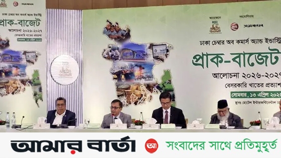 সোমবার (১৩ এপ্রিল) রাজধানীর হোটেল ইন্টারকন্টিনেন্টালে ‘প্রাক-বাজেট আলোচনা ২০২৬–২৭: বেসরকারি খাতের প্রত্যাশা’ শীর্ষক মতবিনিময় সভায় তিনি এ কথা বলেন। ঢাকা চেম্বার অব কমার্স অ্যান্ড ইন্ডাস্ট্রি (ডিসিসিআই), চ্যানেল ২৪ ও দৈনিক সমকাল যৌথভাবে এই সভার আয়োজন করে।