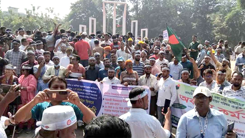 ১-১২ তম নিবন্ধিত নিয়োগ বঞ্চিত সনদধারী প্রার্থীরা নিয়োগের জন্য প্রধান উপদেষ্টা নির্বাহী আদেশ পাওয়ার জন্য অবস্থান কর্মসূচি ও লংমার্চ টু যমুনা কর্মসূচি পালন করছে।