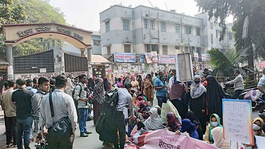 স্বাতন্ত্র্য রক্ষার দাবিতে ইডেন মহিলা কলেজ শিক্ষার্থীদের সড়ক অবরোধ