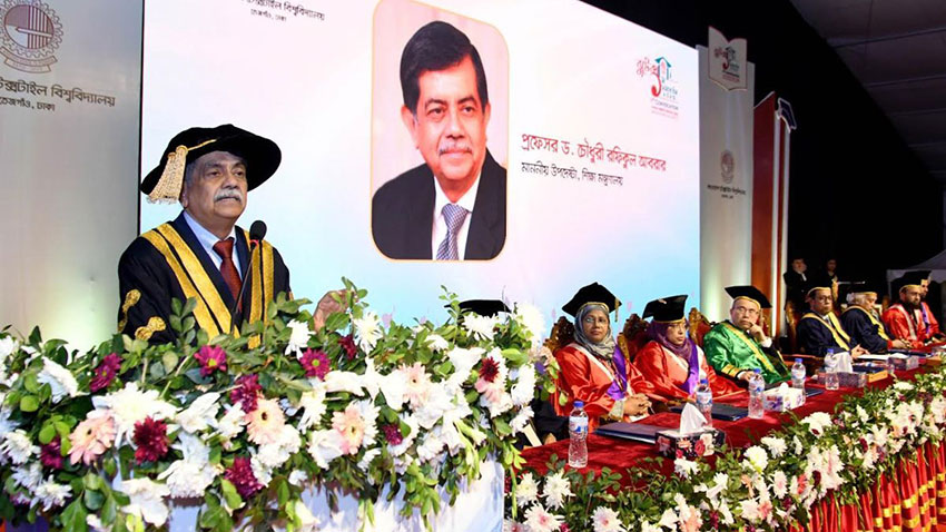 সমাবর্তনে সদ্য স্নাতক ডিগ্রিপ্রাপ্ত শিক্ষার্থীদের অভিনন্দন জানিয়ে ড. আবরার বলেন, ‘আপনারা কেবল একটি ডিগ্রির অধিকারী হননি, বরং আপনারা একটি গৌরবময় উত্তরাধিকার এবং দেশের ভবিষ্যৎ শিল্প ও অর্থনীতিকে নেতৃত্ব দেওয়ার গুরুদায়িত্ব বহন করছেন। সততা, পেশাদারিত্ব ও নৈতিকতার সঙ্গে কাজ করে দেশের প্রয়োজনে উদ্ভাবনী সমাধান দেওয়াই হবে আপনাদের প্রধান অঙ্গীকার।’
