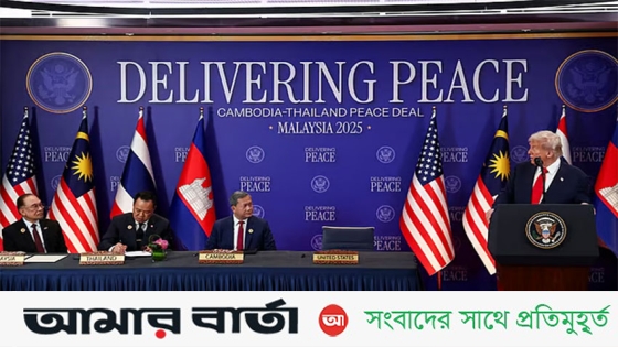 রোববার (২৬ অক্টোবর) ট্রাম্পের সামনে শান্তিচুক্তিতে সই করে দক্ষিণপূর্ব এশিয়ার দেশ দুটি।