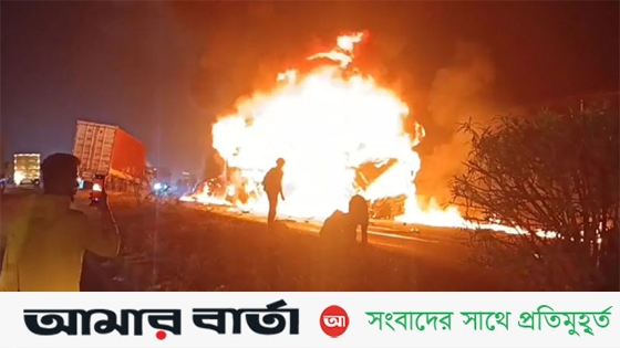 ট্রাকের ধাক্কায় দাউদাউ করে জ্বলে উঠল বাস, জীবন্ত পুড়ে ১০ জনের মৃত্যু