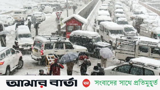 বরফে অবরুদ্ধ কোঠি-মানালি জাতীয় সড়ক। ওই পথে ৭-৮ কিলোমিটার গাড়ির দীর্ঘ লাইন। খাবার-পানি ছাড়া রাতভর গাড়িবন্দি পর্যটকেরা। রোববার সকালেও তুষারপাতের বিরাম নেই। এই অবস্থায় আশ্রয়কেন্দ্র পৌঁছাতে প্রায় ২০ কিলোমিটার ট্রেক করতে হচ্ছে পর্যটকদের।