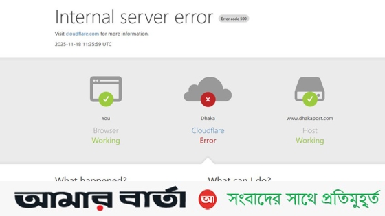 বাংলাদেশসহ বিশ্বজুড়ে ব্যবহারকারীরা যখন এই সাইটগুলোতে প্রবেশের চেষ্টা করেন, তখন বলা হয়- ‘ক্লাউডফ্লেয়ারের নেটওয়ার্কে অভ্যন্তরীণ সার্ভার ত্রুটি দেখা দিয়েছে। কয়েক মিনিট পর পুনরায় চেষ্টা করুন।’