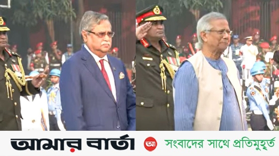 সশস্ত্র বাহিনী দিবসে শিখা অনির্বাণে পুষ্পস্তবক অর্পণ করে মুক্তিযুদ্ধে শহীদদের শ্রদ্ধা জানিয়েছেন রাষ্ট্রপতি মো. সাহাবুদ্দিন ও প্রধান উপদেষ্টা ড. মুহাম্মদ ইউনূস।