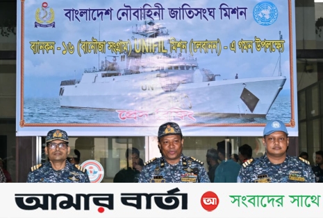 জাতিসংঘ শান্তিরক্ষা মিশন ইউনিফিল-এ অংশ নিতে বাংলাদেশ নৌবাহিনীর আরও একটি নতুন কন্টিনজেন্ট লেবাননের উদ্দেশ্যে চট্টগ্রাম ত্যাগ করেছে। বুধবার (২৬ নভেম্বর ২০২৫) সকালে চট্টগ্রামের শাহ আমানত আন্তর্জাতিক বিমানবন্দর থেকে বিশেষ ফ্লাইটে ব্যানকন-১৬-এর ৮৫ জন সদস্য লেবাননের উদ্দেশে রওনা দেন। তারা লেবাননের জলসীমায় নিয়োজিত বাংলাদেশ নৌবাহিনীর যুদ্ধজাহাজ ‘বানৌজা সংগ্রাম’-এ যোগদান করবেন। দেশত্যাগের মুহূর্তে নৌবাহিনী সদস্যদের প্রতি শুভকামনা ও দায়িত্ব পালনে সফলতার প্রত্যাশা জানানো হয়।