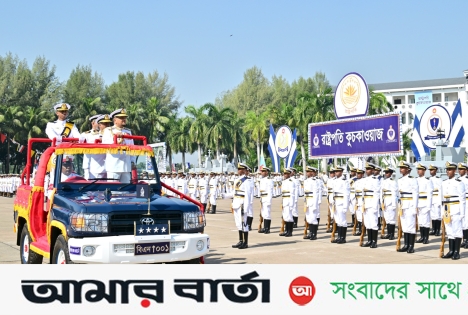 বাংলাদেশ নেভাল একাডেমিতে নৌবাহিনীর মিডশিপম্যান ২০২৩-এ ব্যাচের সমাপনী শীতকালীন রাষ্ট্রপতি কুচকাওয়াজ আজ রবিবার মনোমুগ্ধকর আয়োজনের মাধ্যমে অনুষ্ঠিত হয়েছে। ঐতিহ্যবাহী এই অনুষ্ঠানে নৌবাহিনী প্রধান এডমিরাল এম নাজমুল হাসান প্রধান অতিথি হিসেবে উপস্থিত থেকে কুচকাওয়াজ পরিদর্শন ও সালাম গ্রহণ করেন। তিন বছরব্যাপী কঠোর সামরিক প্রশিক্ষণ সফলভাবে সমাপ্ত করার পর এ ব্যাচের ০২ জন নারীসহ ৩১ জন মিডশিপম্যান আনুষ্ঠানিকভাবে সাব-লেফটেন্যান্ট পদে কমিশন লাভ করেন।