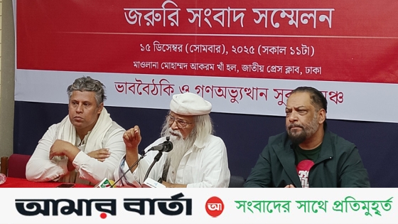 সোমবার (১৫ ডিসেম্বর) দুপুরে রাজধানীর জাতীয় প্রেস ক্লাবের মাওলানা মোহাম্মদ আকরম খাঁ হলে ‘আততায়ী রাজনীতি ও গণকর্তব্য’—শীর্ষক জরুরি সংবাদ সম্মেলনে তিনি এ সব কথা বলেন। ভাববৈঠকি ও গণ-অভ্যুত্থান সুরক্ষা মঞ্চ নামের সংগঠন এই সংবাদ সম্মেলনের আয়োজন করে।