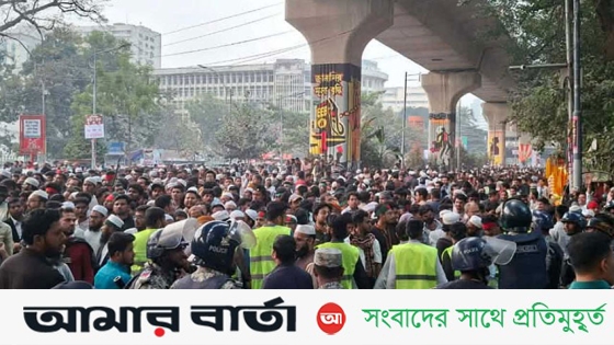 ওসমান হাদির কবরের দিকে জনস্রোত, শাহবাগে পুলিশের ব্যারিকেড