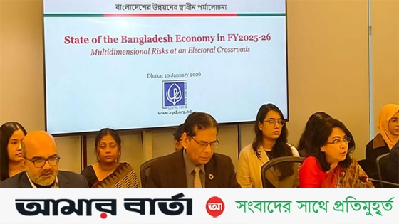 শনিবার (১০ জানুয়ারি) রাজধানীর ধানমন্ডিতে বেসরকারি গবেষণা সংস্থা সেন্টার ফর পলিসি ডায়ালাগ (সিপিডি) আয়োজিত অনুষ্ঠানে এসব কথা বলেন সিপিডির নির্বাহী পরিচালক ড. ফাহমিদা খাতুন। ‘বাংলাদেশের অর্থনীতি ২০২৫-২৬: নির্বাচনি বাঁকে বহুমাত্রিক ঝুঁকি’ শীর্ষক অনুষ্ঠানে মূল প্রবন্ধ উপস্থাপন করেন তিনি। এসময় উপস্থিত ছিলেন সিপিডির সম্মাননীয় ফেলো অধ্যাপক মোস্তাফিজুর রহমান, সিপিডির গবেষণা ফেলো ড. খন্দকার গোলাম মোয়াজ্জেম প্রমুখ।
