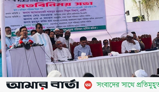 শুকবার রাজধানীর গুলিস্তান নাট্যমঞ্চ উমুক্ত মাঠে গুলিস্তান ও ফুলবাড়িয়া বাস টার্মিনাল সড়ক পরিবহন মালিক শ্রমিক এর উদ্যোগে ঈদযাত্রা নির্বিঘ্ন, নিরাপদ, হয়রানী ও চাঁদামুক্ত করার লক্ষ্যে পরিবহণ মালিক, শ্রমিক, পুলিশ, বিআরটিএ, সাংবাদিক ও সিটি কর্পোরেশনের প্রতিনিধিদের সাথে এক মতবিনিময় সভায় প্রধান অতিথির বক্তব্যে তিনি এসব কথা বলেন।
