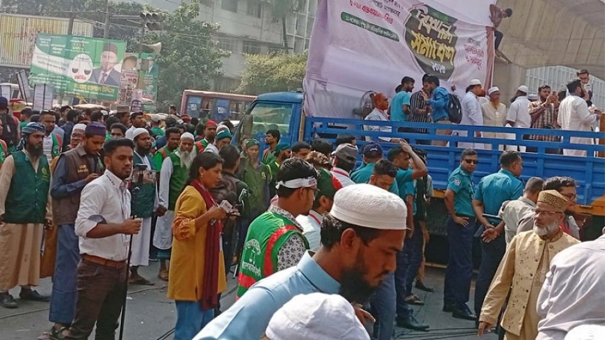 পল্টন মোড়ে দলে দলে যোগ দিয়েছেন জামায়াতসহ ৮ দলের নেতাকর্মীরা