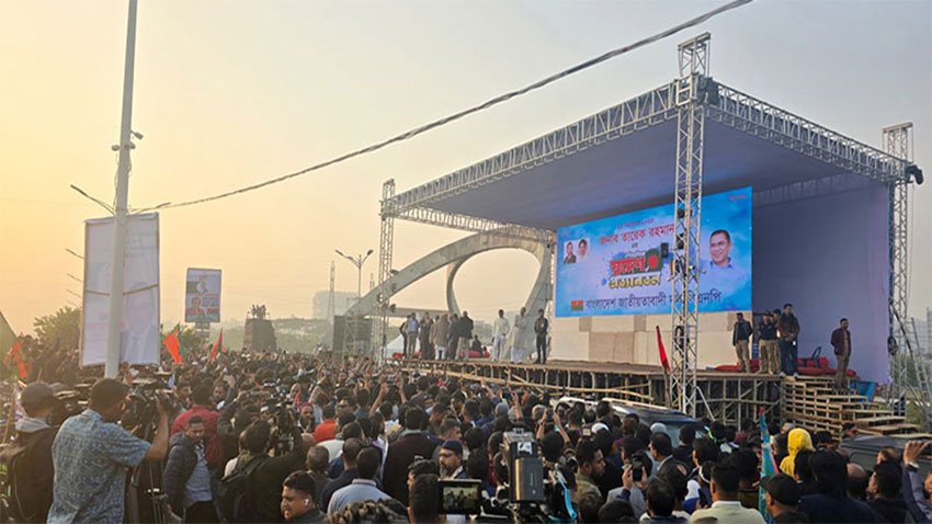 তারেক রহমানের স্বদেশ প্রত্যাবর্তন উপলক্ষে রাজধানীর পূর্বাচলের ৩৬ জুলাই এক্সপ্রেসওয়ে (৩০০ ফিট) এলাকায় গণসংবর্ধনার আয়োজন করেছে বিএনপি। কুড়িল মোড়সংলগ্ন সড়কের উত্তর পাশে দক্ষিণমুখী করে বাঁশ ও কাঠ দিয়ে তৈরি করা হয়েছে ৪৮ ফুট বাই ৩৬ ফুটের বিশাল মঞ্চ।