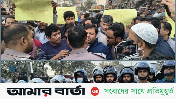 সরেজমিনে দেখা যায়, মার্চটি বাঁশতলায় পৌঁছালে পুলিশ সদস্যরা ব্যারিকেড দিয়ে আটকে দেন। এ সময় তারা নানা স্লোগান দিতে থাকেন।