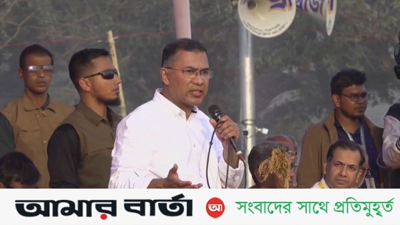 মঞ্চে ওঠার আগে তারেক রহমান সমাবেশেস্থলের পাশে থাকা জুলাই আন্দোলনের আহত ও শহীদ পরিবারের সদস্যদের সঙ্গে কুশল বিনিময় করেন।