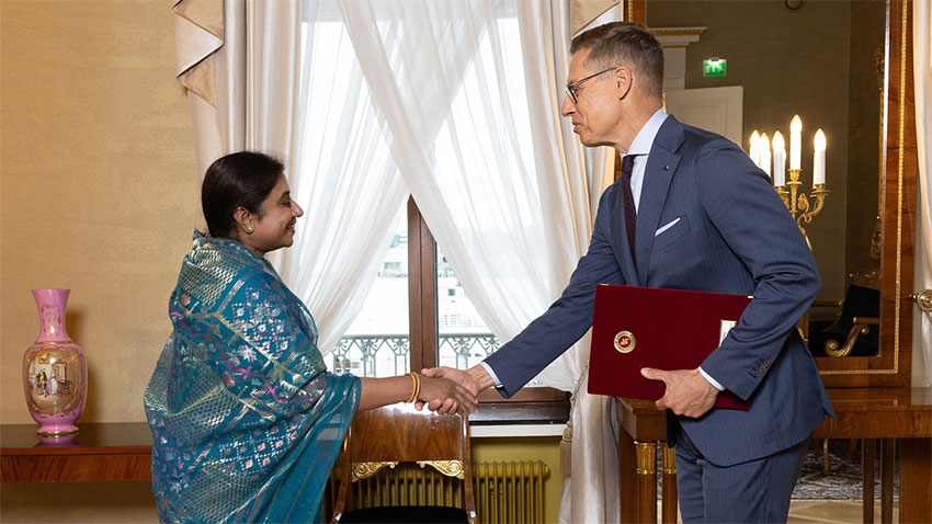ফিনল্যান্ডের রাষ্ট্রপতি আলেকজান্ডার স্টাবের কাছে পরিচয়পত্র পেশ করলেন দেশটিতে নিযুক্ত বাংলাদেশের অনাবাসিক রাষ্ট্রদূত ওয়াহিদা আহমেদ।
