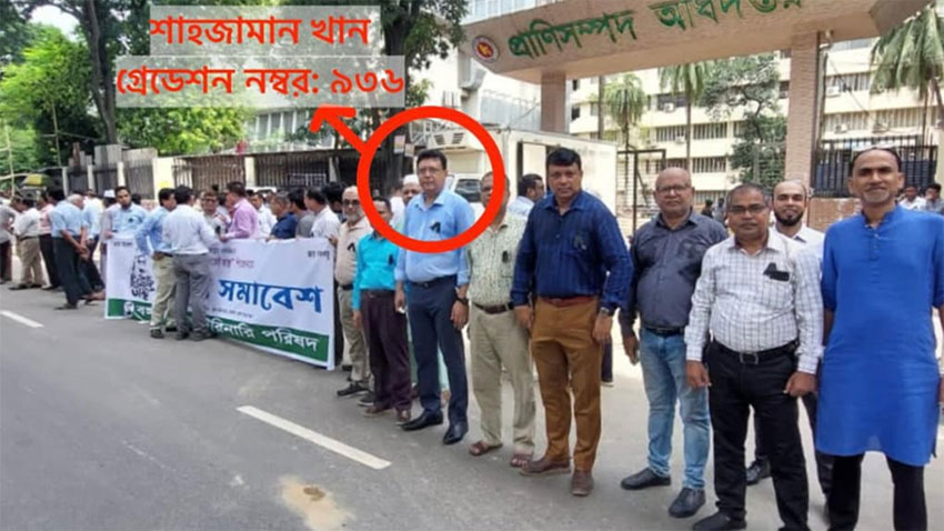 ১৯তম বিসিএসএর মাধ্যমে প্রাণিসম্পদ অধিদপ্তরে যোগদানকৃত মো. শাহাজামান খান (তুহিন) বাংলাদেশ কৃষি বিশ্ববিদ্যালয়ের পশুপালন বিষয়ে ডিগ্রীধারী। সম্মিলিত গ্রেডেশন অনুযায়ী তার গ্রেডেশন নং-৯৩৬। চাকুরী জীবনে বিভিন্ন অনিয়ম দূর্নীতির কারনে পদোন্নতি প্রাপ্তিতে বিলম্ব ঘটলে মো. শাহাজামান খান (তুহিন) কুমিল্লা জেলা কৃত্রিম প্রজনন কেন্দ্রের উপ পরিচালক হিসাবে কর্মরত সময়ে আওয়ামী প্রভাব খাটিয়ে মৎস্য ও প্রাণিসম্পদ মন্ত্রণালয়ের সাবেক মন্ত্রী শ. ম. রেজাউল করিমের সাথে বিশেষ সখ্যতা গড়ে তোলেন এবং সাবেক মন্ত্রী মির্জা আজমের নিকট হতে আধা সরকারী পত্রের (ডিও লেটার) মাধ্যমে পরিচালক পদে পদোন্নতি বাগিয়ে বিসিএস লাইভস্টক একাডেমীর পরিচালক হন তিনি। এরপর মো. শাহাজামান খান (তুহিন) কে কৃত্রিম প্রজনন দপ্তরের পরিচালক হিসাবে বদলীর আদেশের পরই তার বিরুদ্ধে বিএনপি পন্থী প্রায় শতাধিক কর্মকর্তা বদলীর আদেশ বাতিলের দাবীতে অধিদপ্তর চত্বরে তাৎক্ষনিক বিক্ষোভ মিছিল করে।