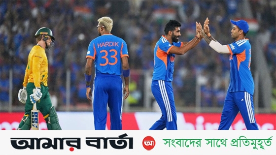 আগে ব্যাটিংয়ে নেমে জসপ্রীত বুমরাহর বোলিংয়ে বিপদে পড়েছিল দক্ষিণ আফ্রিকা। ২০ রানে তারা তিন উইকেট হারায়। ডেভিড মিলার ৩৫ বলে ৬৩ রানের ঝড়ো ইনিংস খেলে চ্যালেঞ্জিং পুঁজি এনে দেন।