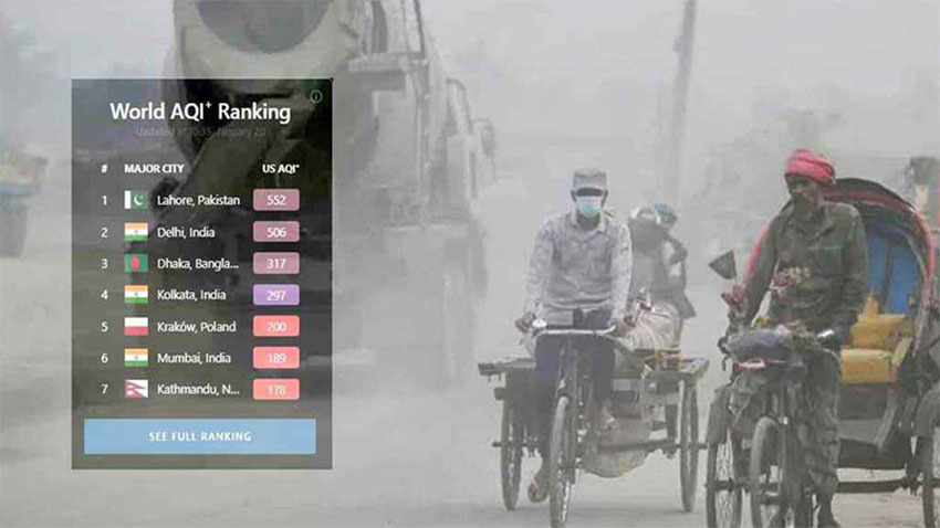 বিশ্বের দূষিত শহরের তালিকায় ঢাকার অবস্থান তৃতীয়, শীর্ষে লাহোর