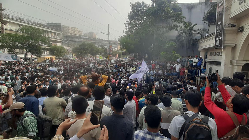 ঢাবি শিক্ষার্থী এবি জুবায়ের বলেন, সাত-আট মাস হয়ে গেল অথচ আজকে এই সময়ে এসেও আমাদের আওয়ামী লীগ নিষিদ্ধের দাবিতে রাস্তায় নামতে হলো। এই সরকারের উচিত ছিল গণহত্যার দায়ে আওয়ামী লীগকে নিষিদ্ধ করা। তারা এত বড় গণহত্যা চালালো অথচ তাদের মধ্যে কোনো অনুশোচনা নেই। এই আওয়ামী লীগকে নিষিদ্ধ করা ছাড়াই সরকারের আর কোনো সুযোগ নেই। আমরা জুলাইয়ের জনতা আপনার (প্রধান উপদেষ্টা) সঙ্গে আছি। আপনি প্রয়োজনে গণভোটের আয়োজন করুন, এই দেশের মানুষ রায় দিবে। এই দেশে আর আওয়ামী লীগের রাজনীতি চলবে না।